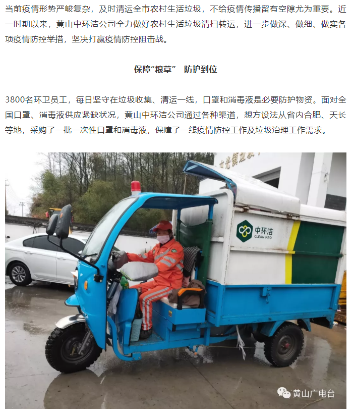 黃山中環(huán)潔公司:全市生活垃圾日產日清,全力防控疫情!
