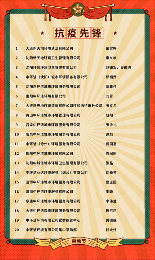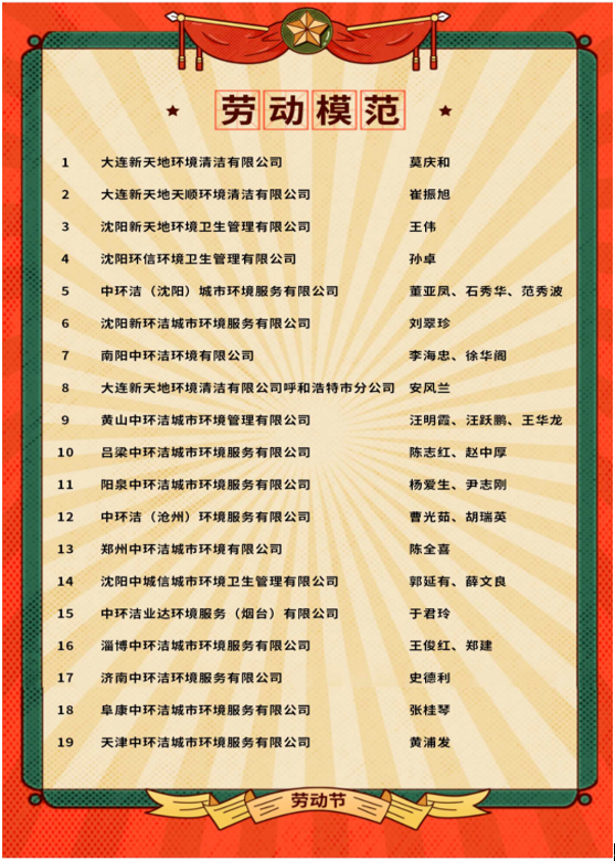 勞模是一個(gè)飽含感情的符號(hào),是一種積極向上的力量。為鼓勵(lì)員工勤勞奮進(jìn)、務(wù)實(shí)創(chuàng)新,充分發(fā)揮模范帶頭作用,調(diào)動(dòng)全體員工的積極性和創(chuàng)造性,中環(huán)潔開(kāi)展評(píng)選勞動(dòng)模范及抗疫先進(jìn)個(gè)人、先進(jìn)班組活動(dòng)。中環(huán)潔勞模們?cè)谒麄児ぷ鲘徫坏囊黄斓乩铮盟麄兊膱?jiān)守、擔(dān)當(dāng)和智慧,贏得贊譽(yù)和尊重。他們是中環(huán)潔環(huán)衛(wèi)人學(xué)習(xí)的榜樣,他們用平凡成就美好。